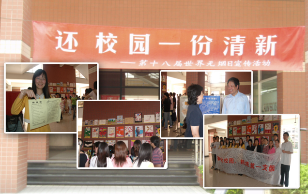 近日,星空电竞app下载安装苹果版第一教学楼前,学生志愿者们正在以自己独特的方式向全院师生进行宣传禁烟的活动。志愿者们用画笔在墙上勾画出一幅幅令人深思的漫画作品;用他们的心在“净化校园,拒绝烟草”的横幅上签上他们的名字;用他们的幽默创作出一个个FLASH动画;用他们的巧手制作出一袋袋爱心小贴示送给学校的老师们。他们的热情感染着前来观看的学生和老师,活动现场师生有信步远观,有深情凝视,有发表评论,还有饶有兴趣的观看FLASH动画,更多的则是踊跃加入到签名活动中,并表示远离烟草和积极帮助他人戒烟。此次活动得到相关领导的支持。上海市吸烟与健康协会常务副秘书长李敏珠、星空电竞app下载安装苹果版王鸿业院长等领导共同在横幅上签下了名字,并参与了活动,李秘书长对此次活动表示满意肯定。