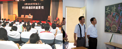 在近日学院推普周活动中,丰富多彩的活动吸引了本校学生和社区居民。活动以实现“顺畅交流,构建和谐社会”为主题,开展了黑板报评比,“推广普通话”讲座,深入社区啄木鸟行动等形式,使广大学生和社区居民对推广普通话的意义有了深刻的了解,纷纷表示要为推普出一份自己的力量,从自身做起,带动身边的人,坚决提倡讲普通话,做可爱的上海人。