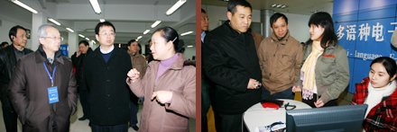 即日,以九时整开幕式为标志,评估包括听课、实地考察、个别访谈等工作全面展开。开幕式后,专家组成员在党委书记徐炽强、副院长袁允伟等陪同下对形体训练房、电钢琴房、音视频制作室、汽车实训室、行健广告公司、多语种文档处理中心、网管中心、教育教学图片展厅等16个校园实训场所进行了实地考察。