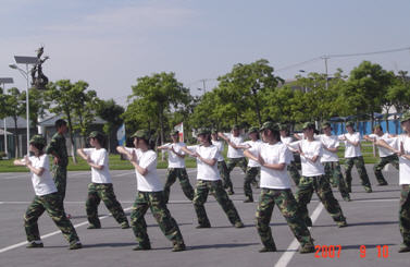 经管系07空乘班有幸在今年军训会操中担任军体拳表演,他们在军训过程中除完成正常的军训任务之外,还进行军体拳的训练。对于之前从来没有接触过这类运动又以女生居多的空乘班而言,这项任务更是一种考验。但是全班同学都坚持到底,除特殊情况外,没有一个同学半途而废,他们最后的表演也博得了参观军训会操表演的领导和同学们阵阵掌声。