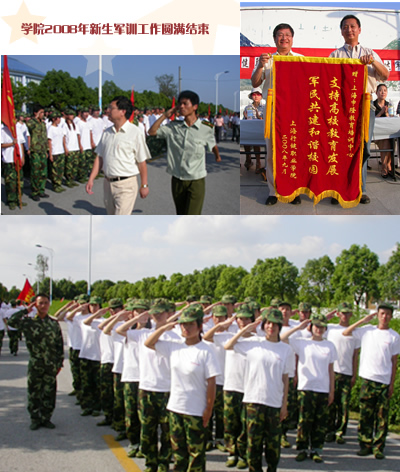 学院2008年新生军训于9月5日至11日在奉贤申隆教育培训中心圆满结束。有1530名学生参加了本次军训,是历年来新生人数最多的一次,达1530人。军训期间,新生要进行军训、政训、党课、安全知识教育等相关内容的学习。同学们克服困难,顺利完成了预定的任务。其中,网络技术1班于军训会操中获一等奖,中澳旅游管理班获军训黑板报评比一等奖,物流管理专业获军训男生内务评比一等奖,学前教育2班获女生军训内务评比一等奖。军体操连和国旗护卫队获军训表演优胜奖。此外,还有139名同学获得优秀营员称号。