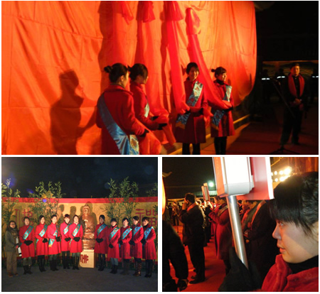 2009年12月31日晚,学院经管系空乘专业10名礼仪志愿者在辅导员的带领下参加了宝华寺迎新祈福撞钟活动。整场大型活动中空乘专业的志愿者们分别担任了广场开幕式礼仪、九龙壁揭幕礼仪、迎新祈福撞钟礼仪。礼仪志愿者们不畏寒冷,4个多小时站在寒风中,面带微笑迎接2010年,欢送2009年。伴随着滚灯、舞龙舞狮、欢庆锣鼓以及猜灯谜、捏面人表演、剪纸艺术、现场书写春联等活动,闸北区旅游局局长任少南敲响了108响吉祥梵钟后,2010年在众人的期盼中到来,礼仪志愿者们也顺利完成了此次意义重大的迎新祈福撞钟会活动!(经管系)