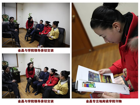近日,院长袁允伟、工会主席季淑惠、科研处处长周杰人、党委宣传部部长李杰以及学生记者代表学院全体师生前去看望了校友金晶,向她致以新春的慰问,并进行了亲切的交谈,达成了金晶重回母校访谈的初步意向。作为学院校外政治辅导员,金晶表示,在今年世博会召开之际,她将再次来到学院和师生交流,介绍她所了解的世博会信息以及志愿者活动心得。 (党委宣传部)