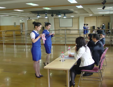 近日,经管系与吉祥航空公司举行空乘专业面试会。08级空乘专业学生参加了面试。面试分别从形象、气质、亲和力、文化素质、身体素质、职业潜力、表现力、应变能力等方面对学生进行了综合考核。有10位同学通过初试,稍后将参加吉祥航空举办的复试。(经管系)