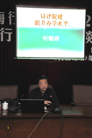 为推动学院教学评估工作顺利开展,使广大教师更清楚地了解评估的具体内容和各项细则,5月21日,学院举行了2010年迎评系列讲座第二讲,邀请全国高职高专院校星空体育网址入口工作水平评估委员会委员、评估专家何锡涛教授为全体教师作题为“以评促建,提升办学水平”的专题报告。