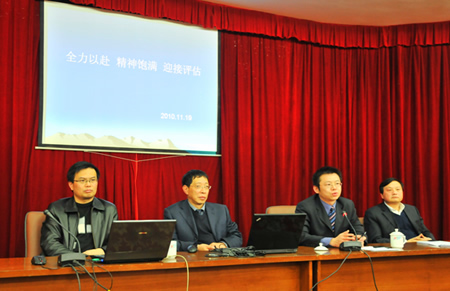 院长袁允伟从学院发展的宏观角度作了发言。袁院长指出,作为区域性高职院校,学院要为区域经济社会发展服务。要走出去,发展外向型教育,加强中外合作交流,为开发国产软件、大飞机项目等贡献力量。袁院长强调,此次评估关系学院未来的发展,要求所有教工认真准备,以饱满的热情迎接评估。