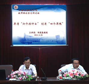5月20日,教师理论学习研讨班全体学员在会议中心2213室聆听市科教党校项建春教授主讲的理论报告——弄清六个“为什么”,划清“四个界限”。学院党委副书记马毅鑫主持了报告会。