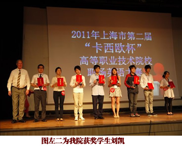 5月22日,第二届上海市高职院校职场英语大赛在上海市立信会计学院拉开帷幕。我院人文系应用英语专业09级学生刘凯、10级学生朱文在领队教研室主任姜妹、指导老师宋婕、汪文娟的陪同下参加了此次大赛,同时2010级应用英语专业黄玲、冯彬颜等四位同学前往观摩。在上午的定题演讲环节中刘凯同学以较强的气场、良好的演讲风范顺利进入下午的职场对话及评委问答环节,经过一番角逐,刘凯同学最终获得了三等奖。通过这次比赛,学生对职场英语的概念更加清晰,同时对于上海市其他高职院校的同类学生的英语水平也有了进一步的认识,比赛和观摩活动增强了同学们的学习热情和信心。(人文系)