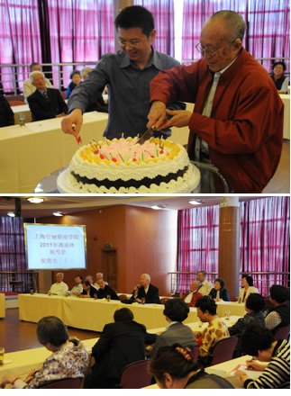 5月25日上午,学院领导与47位发染霜雪的离退休教师欢聚一堂,在图书馆多功能厅举行了一场祝寿会。院长袁允伟代表学校党政工向各位离退休教师祝贺词,介绍了近年来学校教育教学工作取得的喜人成果;并对离退休教师一如既往地支持学院各项工作、积极参与学院各项社会公益活动表示由衷感谢。学院党委书记黄群和寿星代表90岁高龄的吴强老寿星共同切开大蛋糕,分享各自的退休生活,并畅谈学校的未来与发展。退休老干部一致感谢学院党政工各级领导对离退休教职工的尊重与关爱。全体寿星与学院领导一起拍照留念。(退管会)