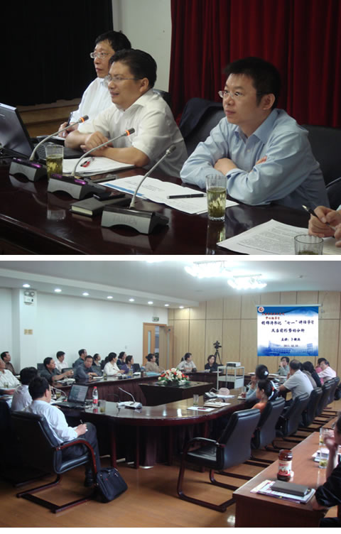 学院党委书记黄群再次重申当前政治思想理论学习的总体要求,要求各党支部、系部结合讲座进一步学习贯彻“七 一”精神。同时向全体中层干部提出五点要求:一、加强思政理论学习,提高政治意识、政治素质,培养政治敏锐性;二、坚定理想信念,政治上要无比清醒,增强责任意识和育人意识;三、将讲座理论内容与当前各项具体工作紧密结合;四、将讲座理论内容与扎实推进学院党建紧密结合;五、认真学习总结讲座的总体精神和理论知识,在工作中进行科学民主管理与决策。黄群书记进一步指出,学院将以此次中心组学习为契机,进一步加强学院教师的政治理论学习,在新一轮文明单位创建中,克服困难,排除障碍,为实现学院085工程目标及文明创建而努力工作。(党委宣传部)