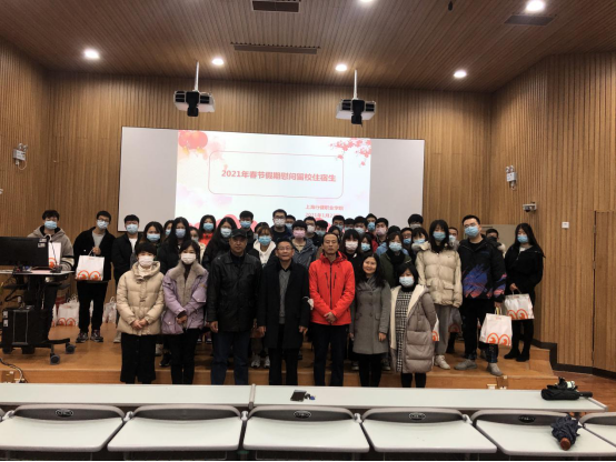 学生处处长孙波从假期住宿安全及管理方面与同学们进行了交流,学院党委副书记李越代表学院对同学们进行慰问,希望同学们能安全开心的在校度过一个愉快的春节假期。活动最后,参会老师们代表学院向同学们发放慰问品并合影留念。(学生处)