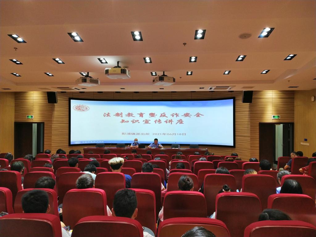 6月是“安全生产月”,为进一步增强我院学生安全防范意识,了解相关法律知识,6月18日下午,后保处特邀彭浦镇派出所夏冰和吴宗元两位警官于敏行楼2113室举办法制教育暨反诈安全知识宣传讲座。各学系安全员、辅导员代表、各班级学生骨干及大学生平安志愿者共计130余人参加。讲座由后保处董国勋老师主持。