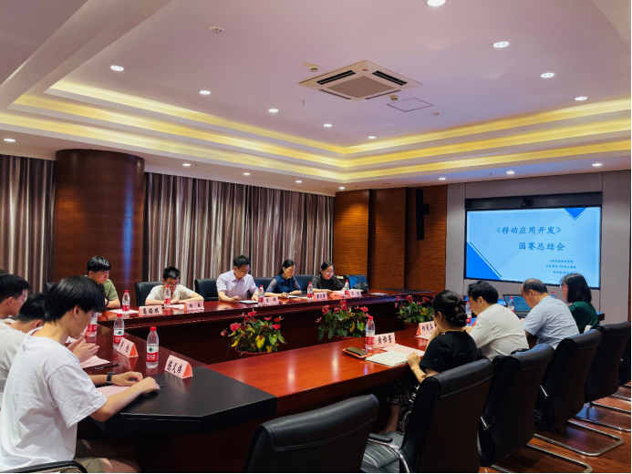 6月23日,信机系“移动应用开发”国赛总结会在明德楼1304召开。出席会议的有学院院长黄群、副院长章卫芳,上海市移动应用开发专家组成员:上海互联网软件集团有限公司副总裁阳国华、上海工程技术大学苏前敏教授、信机系主任王莹、软件技术专业主任东苗、软件技术专业教师黄雅菁,“移动应用开发”赛项国赛上海选手杨威以及部分软件技术专业星光计划集训队学生代表。会议由信机系主任王莹主持。