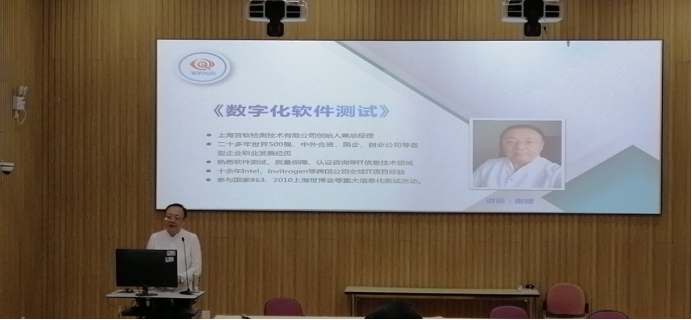 为深化校企合作,让学生更好地了解软件测试行业,6月25日下午,信机系邀请开源软件专业委员会专家、国际软件测试认证委员会中国分会(CSTQB)专家、上海市社会信用促进中心顾问、大学生创业导师、上海宜软检测技术有限公司总经理谢靖在知行楼7207多媒体教室举办了一场“数字化软件测试”专题讲座。信息技术与机电工程系主任王莹,孙富菊、朱景德老师以及19级、20级软件技术专业全体同学参加讲座,讲座由校企合作项目负责人孙富菊老师主持。