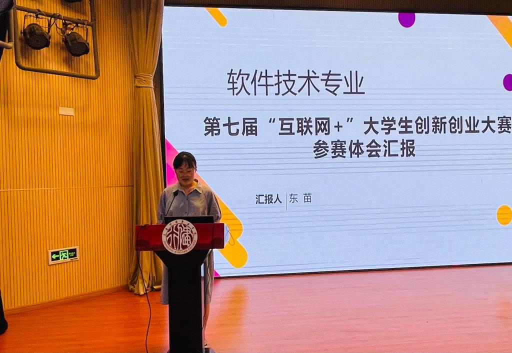 在经验交流分享环节,商务外语系的朱磊老师和信息技术与机电工程系的东苗老师分别就教师团队参赛和学生参赛指导做了详实、充分的经验分享。朱磊老师从“挑选好课程”“组建好团队”“研读好要求”“梳理好思路”“录制好课程”“模拟好比赛”“美化好材料”七个方面梳理了参赛体会,提出中肯建议。东苗老师则详细介绍了指导学生在第七届“互联网+”大学生创新创业大赛中获得金奖的参赛项目,并从创新创业需要立足于专业分阶段开展,专业知识学习和创业教育联动以及多方协作合力推动三个层面分享了心得体会及今后努力方向。