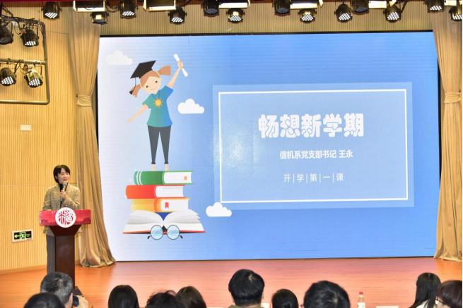 晚会在朗诵《起航》中拉开序幕。紧接着,信机系主任王莹老师从专业发展、职业选择方向出发,为21级新生上了一堂思政课。王老师向新生详细讲述了信机系星空体育网址入口特色,展示了优秀毕业生的风采,提出了新阶段的期望和要求。要求大家一是培养良好的学习习惯,二是培养自己的规划意识,三是树立目标并为之努力,希望大家能够在接下来的两到三年时间里扎实学习、学有所成,在行健度过一段充实、美好的时光。
