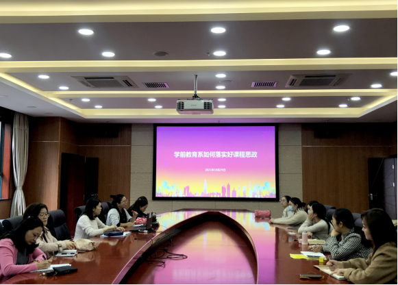 为深入学习贯彻《高等学校课程思政建设指导纲要》精神,扎实推进课程思政建设,10月29日下午,学前教育系在敏行楼2212室举行“学前教育系如何落实好课程思政”会议,全体教师参加,会议由学前教育系主任李娜主持。