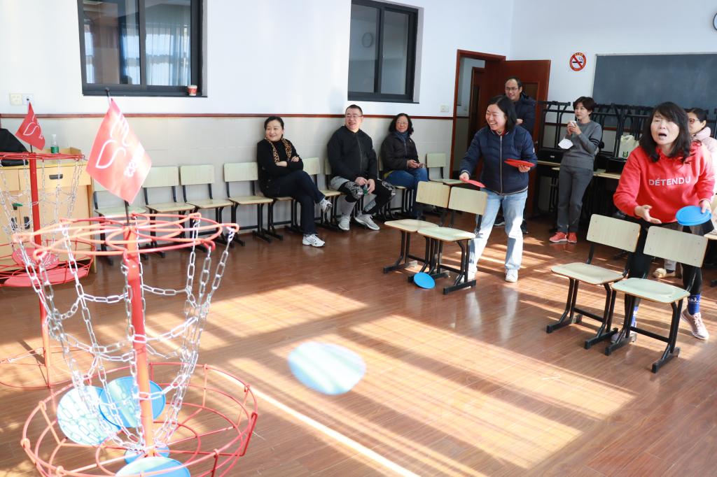本次会议活动由继教部策划组织,年度总结会结合各街镇社区教师年终考评分组完成。素质拓展活动当天,分为上下午两场。根据防疫要求,每场人数限制50人以下,拓展项目有飞盘比准、抖球达人、大脚丫竞速,每个项目固定一间教室开展,参与人员分批次参加。