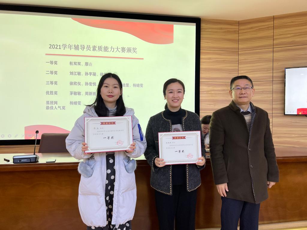 会上,首先表彰了杜双双、廖垚等13位在2021学年度学院辅导员素质能力大赛上荣获奖项的辅导员。党委副书记李越和各学系党支部书记为获奖教师颁发荣誉证书并合影留念。随后,信息技术与机电工程系党支部书记王永从“日常工作规范化”“主题教育常态化”“活动育人特色化”“思想工作走心化”四个方面介绍了信机系学生工作开展情况,并就学生思想工作难点和痛点问题与全场人员进行交流分享。经济管理系党支部书记谭可从“围绕立德树人中心环节,做好大学生思想政治教育工作”“做实做细常规工作,提升管理服务水平”“做好民族学生工作,帮助民族同学成长成才”“心理健康”“劳动体育”“创新创业”“工作计划谋未来”七个模块对本学期经管系学生工作进行回顾总结并分享了“心态的改变,关系的改善,问题的解决”案例故事。