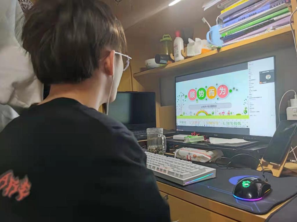 本次活动由各班辅导员主持,以腾讯会议、微信等作为会议平台。会上,师生紧紧围绕“积极配合疫情防控工作,做好自我管理”“积极参与宿舍区各类志愿活动”“端正线上学习态度”“关爱自身心理健康状况”等方面展开交流讨论。每位辅导员老师在会中强调住宿生要遵守校园防疫要求,走读生要明确并遵守社区防疫规定,并就同学们封校期间的学习和生活提出建议,鼓励大家以乐观的心态、积极的状态面对疫情,安心学习、共克时艰。同学们畅所欲言,表达了自己在封校期间的经历和感悟,并表示会积极配合防疫工作,按时完成线上学习,做好自我管理,主动参与学院、社区各类志愿者服务等,为早日打赢疫情防控阻击战贡献青春力量。