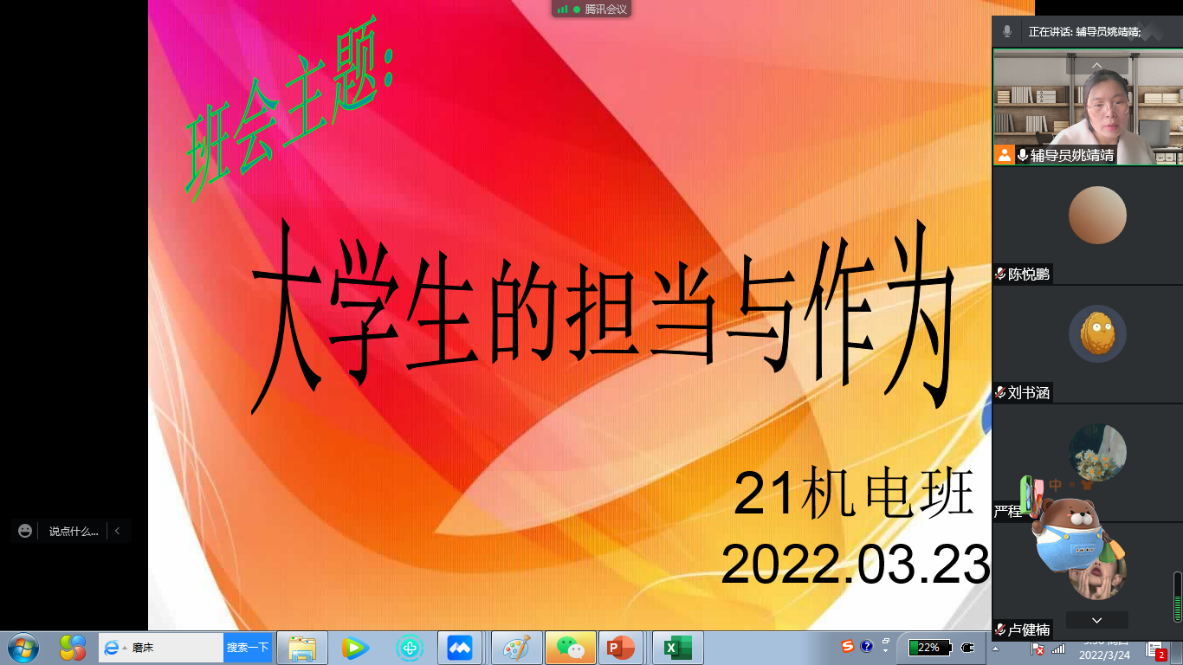 为帮助学生正确认识现阶段上海的疫情形势,切实加强疫情防控期间对学生的思想教育和心理关怀。近期,信机系各班级以“力行担当 共抗疫情”为主题召开线上主题班会。