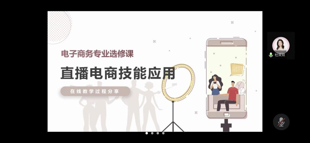 对于线上教学工作,两位老师和大家进行了分享。首先,杜双双老师分享了自己《直播电商技能应用》的在线教学过程。在线教学期间,杜老师的课程内容涉及到了行业概念、理论知识以及职业技能等知识点,她采取了互动教学方式进行授课。她先让学生根据自己的特长选择主播、运营及短视频策划等岗位,再以团队协作形式完成教学实践。最后,她针对不同岗位的同学设置不同的考查任务,从而完成教学成果验收。此外,根据直播行业的特殊性,她要求所有同学打开摄像头和麦克风以实时沟通交流的方式授课。她在教学过程中穿插热门主播案例辅助教学,并在学习通发布相应课堂实践任务,帮助同学们巩固学习新知识。同时,她还引入国家的“电商扶贫”相关政策解读,提升学生的家国情怀。她引导学生科学利用现代化的专业知识和技能响应国家政策号召,争做新时代大学生;另一方面,她以主播们带货“ 翻车”案例为引,剖析直播带货环节会涉及到的消费者侵权等法律问题,进行普法知识宣传,引导同学们严格守法,利用法律法规维护自身权益。