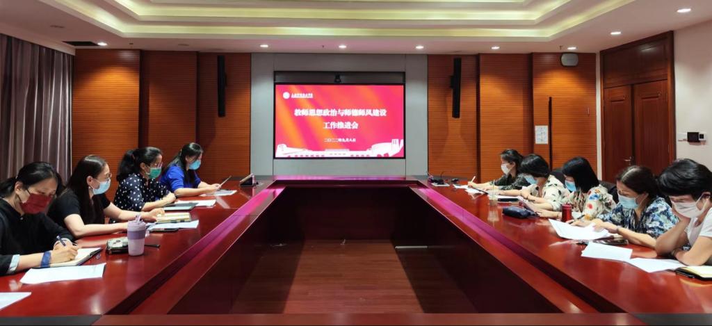 为落实上海市教卫党委“高校教师思想政治和师德师风建设深化年”的工作要求,进一步加强党对高校教师工作的领导,切实提升教师思想政治素质和师德水平,9月8日下午,学院在明德楼1304室召开了学院教师思想政治与师德师风工作推进会,会议对强化学院教师思想政治工作、开展师德师风建设进行工作部署。党委书记沈燕华出席并讲话,党委教师工作部部长张蕾、党委宣传部常务副部长任琳琳、各学系党支部书记参加会议。党办主任曹娜主持会议。