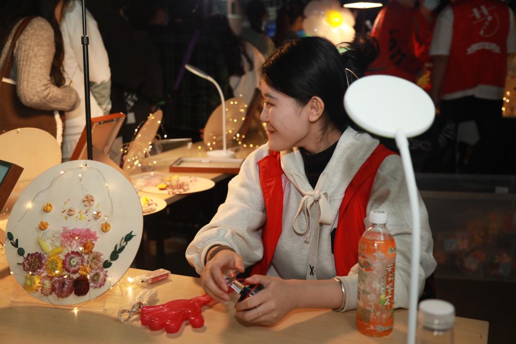 学院团学会学生代表黄柏思同学为大家介绍了此次开幕式中嘉年华活动的精彩内容。外语系以互动轻游赛的模式,带领大家了解各国传统游戏文化;经管系通过中国结编制、水拓画印染、石膏彩绘三项体验活动,让同学们亲身体验传统文化;艺术系将代表永恒的干花与中国传统工艺品蒲扇相结合,引导学生争做优秀传统文化的传承者和发扬者;信机系设置了一系列涵盖科技展示、文化创意等内容的活动,让大家领悟科技的魅力;学前系将微型幼儿园搬进行健校园,真实还原幼儿园环创实景,让同学们体验幼儿园环创的乐趣。行健学子在本届三创节的活动中充分发挥创意创新创业的才能,激发创意激情,在创新之路发出“强国之路,科创有我”的铮铮誓言。