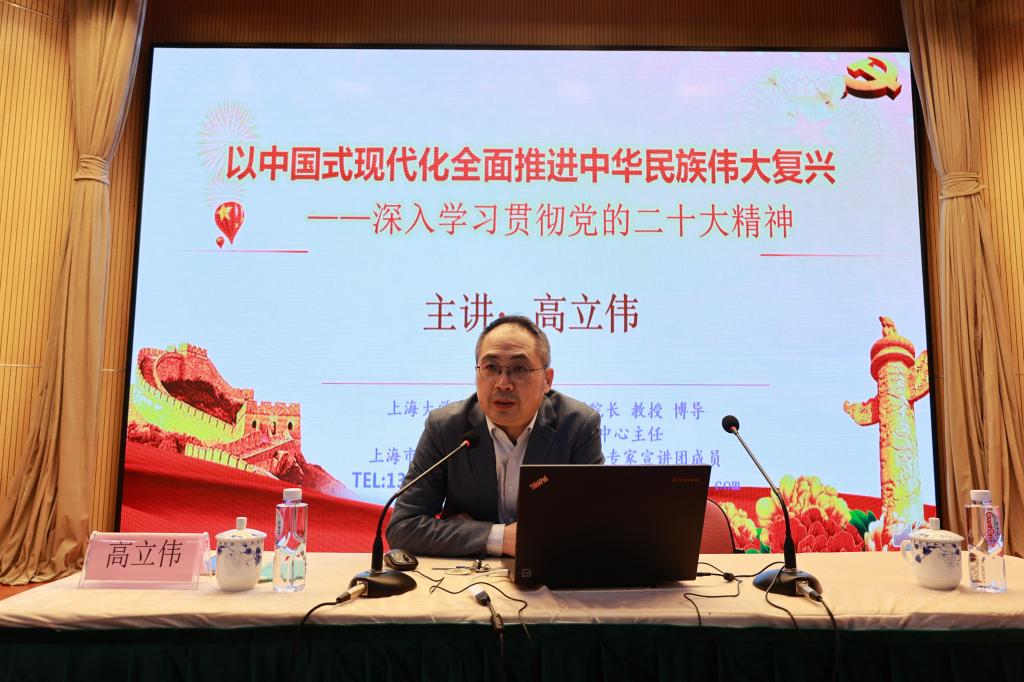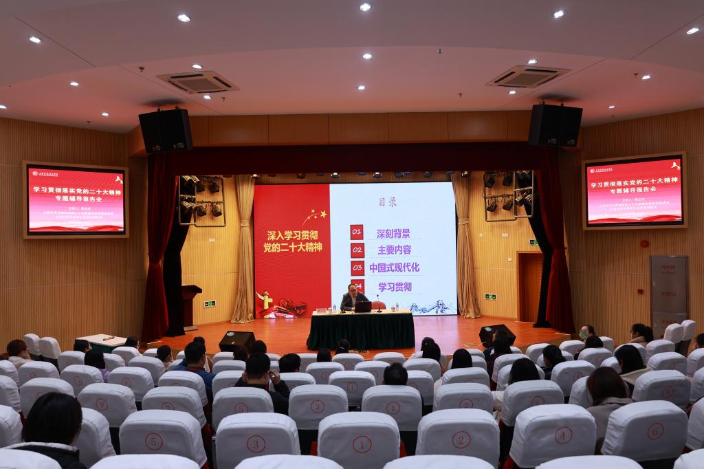 12月2日,学院召开学习贯彻落实党的二十大精神动员部署会暨专题辅导报告会,邀请上海市学习贯彻党的二十大精神专家宣讲团成员、上海大学马克思主义学院副院长高立伟教授以“中国式现代化全面推进中华民族伟大复兴——深入学习贯彻党的二十大精神”为题,为全院党员教职工和民主党派人士作专题辅导报告。学院党委书记沈燕华主持。全体党员教师、民主党派教师参加。