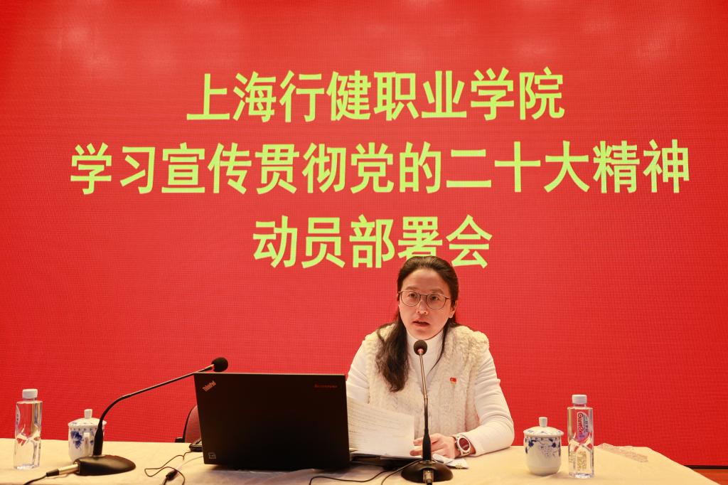 为将学习宣传贯彻党的二十大精神引向深入,报告会后,学院举行学习宣传贯彻党的二十大精神动员部署会,沈燕华书记做动员讲话。她指出,学习宣传贯彻党的二十大精神是学院当前和今后一个时期的首要政治任务。全院师生要在全面学习、全面把握、全面落实上下功夫,学深悟透,在推动学校事业发展上,找准学习贯彻落实党的二十大精神的结合点,切实把党的二十大精神学习成效转化为推动学院高质量发展的生动实践。就学院《关于学习宣传贯彻党的二十大精神的实施方案》,她着重从指导思想、实施原则、工作措施和工作要求四个方面进行全面解读和工作部署。同时,就抓好落实提出要求: