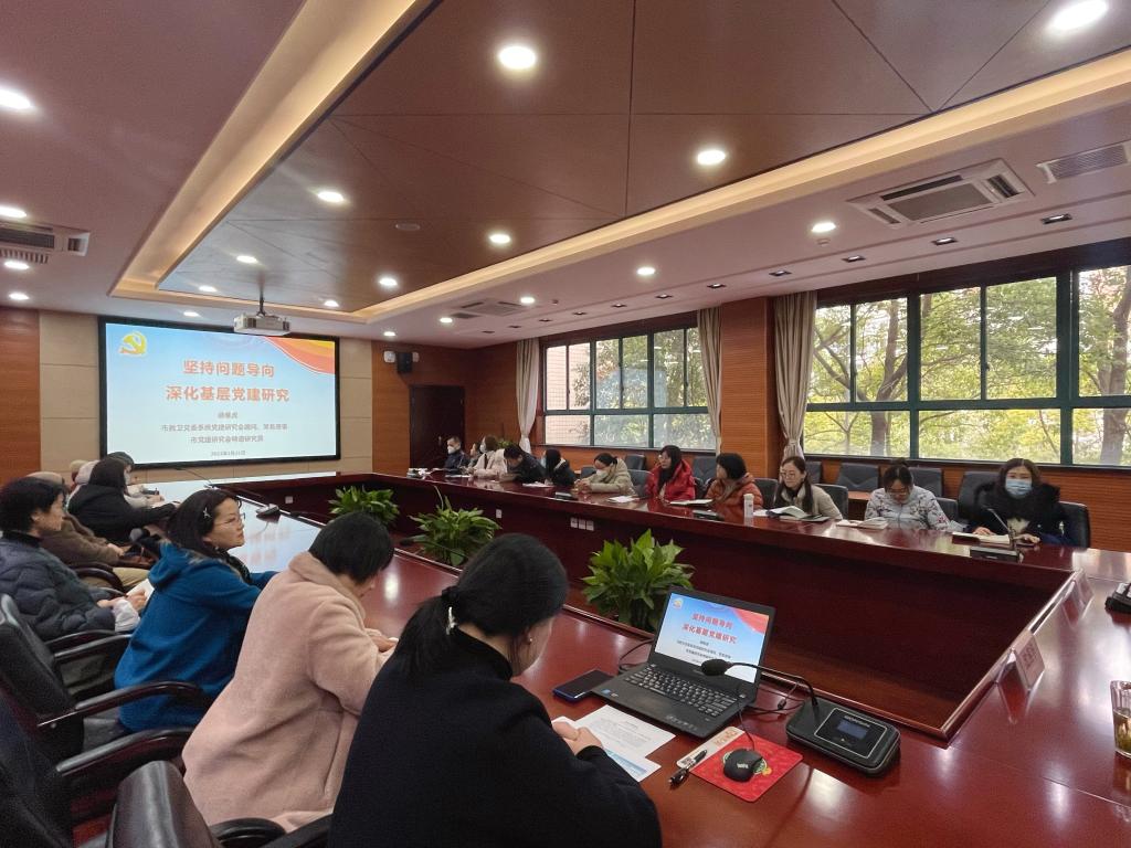 会上,顾继虎以《坚持问题导向深化基层党建研究》为主题进行讲授,从“坚持问题导向的时代价值”“推进基层党建创新的着力点”“突出加强基层党建研究的创新性”三个方面作了详细阐述。他指出,党的二十大对坚定不移全面从严治党,深入推进新时代党的建设新的伟大工程作出全面部署、提出明确要求。突出创新性是新时代党建研究的重要特点,也是基层党建高质量发展的内在要求。推进实践基础上的理论创新,必须坚持问题导向,坚持守正创新,要立足全局增强问题意识,要深入调研找准突出问题,要聚焦创新着力解决问题。随后,顾继虎对学校各党支部拟申报的党建课题进行针对性指导,他表示做课题研究,研究方向要明确,研究思路要清晰,研究方法要恰当,研究成果要突出。党建工作的亮点在基层,难点也在基层。党建研究要抓住基层党组织的特点,结合实际情况,把基层党建中的难点、痛点、堵点问题作为党建研究课题的重点、热点、创新点,着力创造导向正确、思想深刻、务实管用、能够转化的高质量有价值的研究成果,争取在党建课题研究上取得更好的成绩。