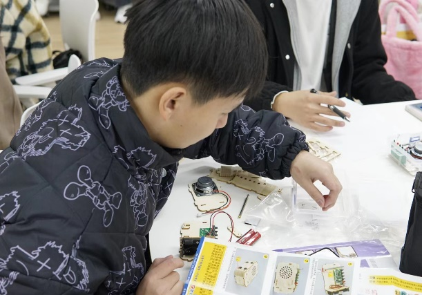 活动现场,在主持人的带领下,大家一起观看并学习了文物修复师王津的故事。随着《我在故宫修文物》纪录片的走红,被称为“故宫男神”的钟表修复师王津进入了人们的视线,他在故宫修复钟表39年,陆续修复和检修了两三百件钟表,他怀着对文物的崇高敬意,对于历史的不断追寻,对于文化的热爱,对于文物修复师这个职业的敬畏心,将这份工作所需要的细致做到了极致。随后,就进入了收音机制作的环节,同学们将收音机的零件慢慢拼插在一起,再画上自己喜欢的图案,一个个独一无二的收音机就制作完成了。