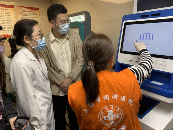 会议伊始,同济医院社工部张静老师对各位志愿者的加入表达了感谢与肯定,对如何开展志愿服务进行了详细的说明,强调了大学生志愿者们需要树立正确的服务意识,希望各位志愿者能够不忘“为人民服务”的初心,积极热情地对待自己的志愿工作。随后,同学们跟随者张静医生参观了同济医院的各个楼层并对如何帮助患者在自助机上挂号进行了模拟实践,帮助同学们深入了解助医导医的各项内容。