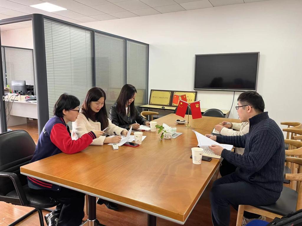 为继续推进优质课程的国际资源库建设,打造和建设高水平的双语电商课程,提升国际合作专业的教学质量,3月8日中午,经济管理系召开了国际资源库双语电商课程二期建设的研讨会。经济管理系副主任孙天慧、党支部书记谭可、中法专业主任丁玲、专业教师陈晓冬参加了研讨会。会议特别邀请了上海工程技术大学刘峥副教授、上海电机学院商学院熊鸿军副教授到会指导。