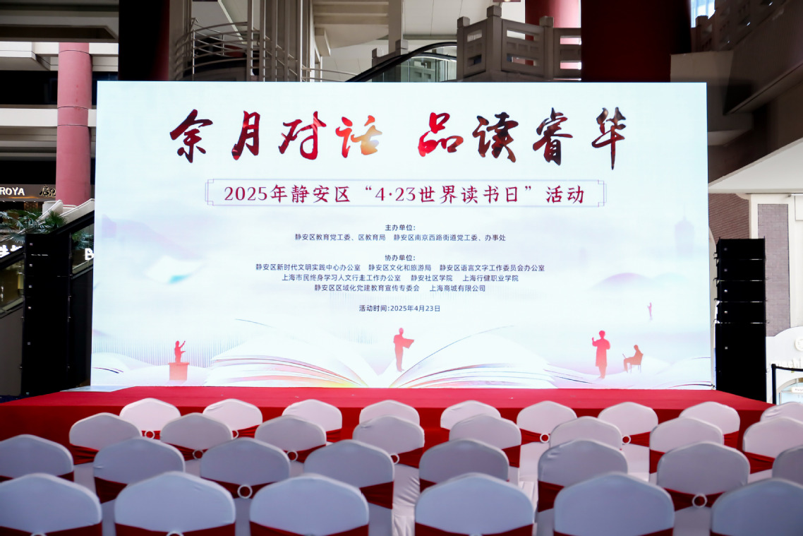在第三十个世界读书日到来之际,为扎实推进本区学习型城区建设,营造“书香静安”浓厚氛围,4月23日下午,2025年静安区“4·23世界读书日”活动在上海商城展览大厅隆重举行。此次活动由静安区教育党工委、区教育局、南京西路街道党工委联合主办,我校作为协办单位之一。市教委副主任叶霖霖、区委副书记徐静、市教委终身教育处处长闫鹏涛、我校校长黄群、区学促委各成员单位相关领导、市民代表等出席活动。