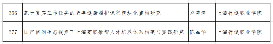 近日,《2026年度上海市教育科学研究项目拟立项名单网上公示》发布,学校信息技术与智能制造学院陈品华院长主持的《国产信创生态视角下上海高职数智星空体育网址入口体系构建与实践研究》以及智慧康养与教育学院卢津津老师主持的《基于真实工作任务的老年健康照护课程模块化重构研究》两项课题成功获批立项,彰显了学校在教育科学研究领域的扎实积淀与鲜明特色。