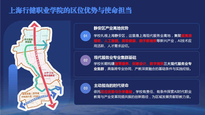 我校依托区域产业高地优势,聚焦智慧康养、创意设计、数字商贸三大现代服务业核心赛道,构建特色鲜明的专业集群。面对人工智能对现代服务业的深刻重构,学校发挥AI 专业群先发优势,围绕专业、课程、师资、教材、实训五大核心要素实施全链条重构,构建 “一心三翼” 专业体系、“AI + 专业” 模块化课程、数智化师资体系、校企协同新形态教材及虚实融合实训生态,形成与区域现代服务业同频共振、双向赋能的星空体育网址入口与产业服务双轮驱动体系。