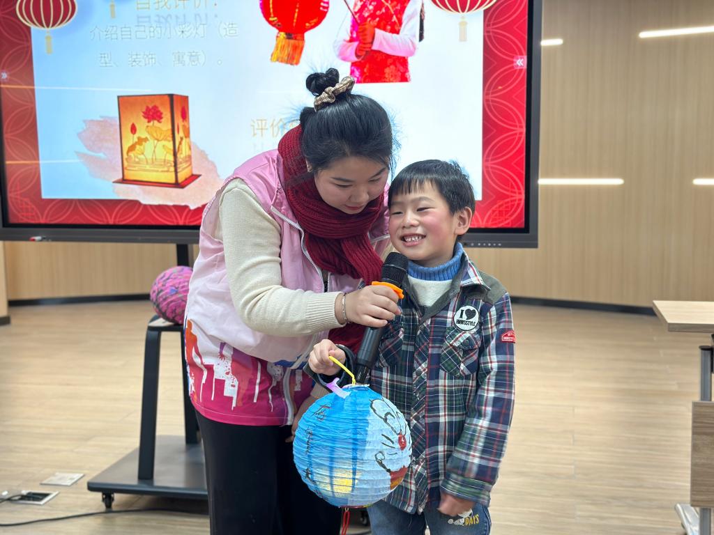 在一双双巧手下,一盏盏形态各异、富有童趣的灯笼在孩子们和爸爸妈妈的共同努力下逐渐完成。孩子们提着灯笼,爱不释手地玩着,脸上洋溢着幸福的笑容。现场的许多小朋友们还勇敢地向大家介绍了自己设计的独一无二的灯笼,向大家表达了对新的一年的美好祝愿。