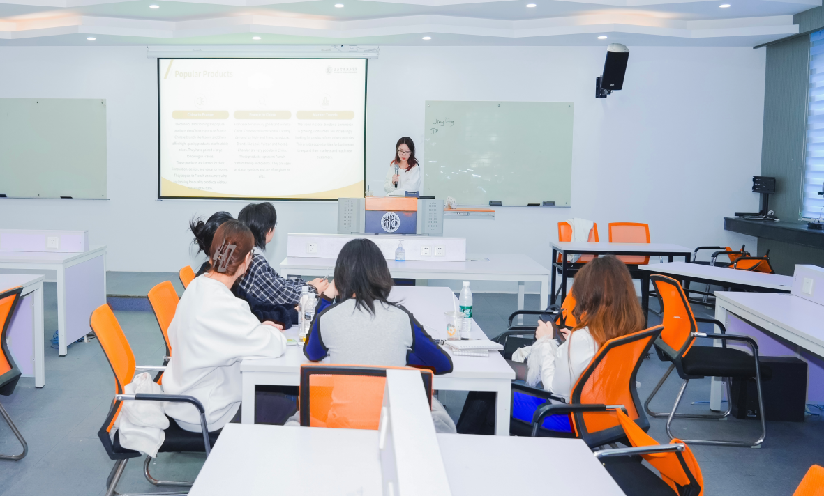 针对此次交流的法国学生们的学习需求,数字商贸学院对专业课程进行了升级更新,由杜双双、杨婧雯和曹一帆三位教师主讲的电子商务专业系列课程结合了最新的“互联网+”新思维、社交网络营销等中国电商核心领域的变化。课程全英文授课,以中国电子商务的真实店铺数据、最新案例新闻为教学资源,通过模拟实战与案例研讨,系统解析中国电商领域的创新内容。