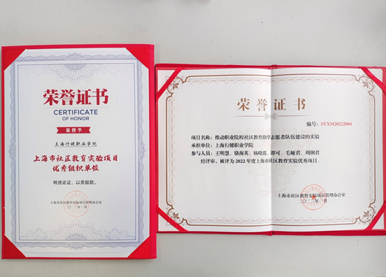 继教部始终坚持以项目课题为引领,多年来持续承担市级、区级社区教育实验项目与课题,多次获奖。此次,学校获评“2017--2022年社区教育实验项目优秀组织单位”,学校申报的《推动职业院校社区教育助学志愿者队伍建设的实验》获市优秀项目奖,该项目由继续教育部牵头学系和团委共同完成。(继教部)