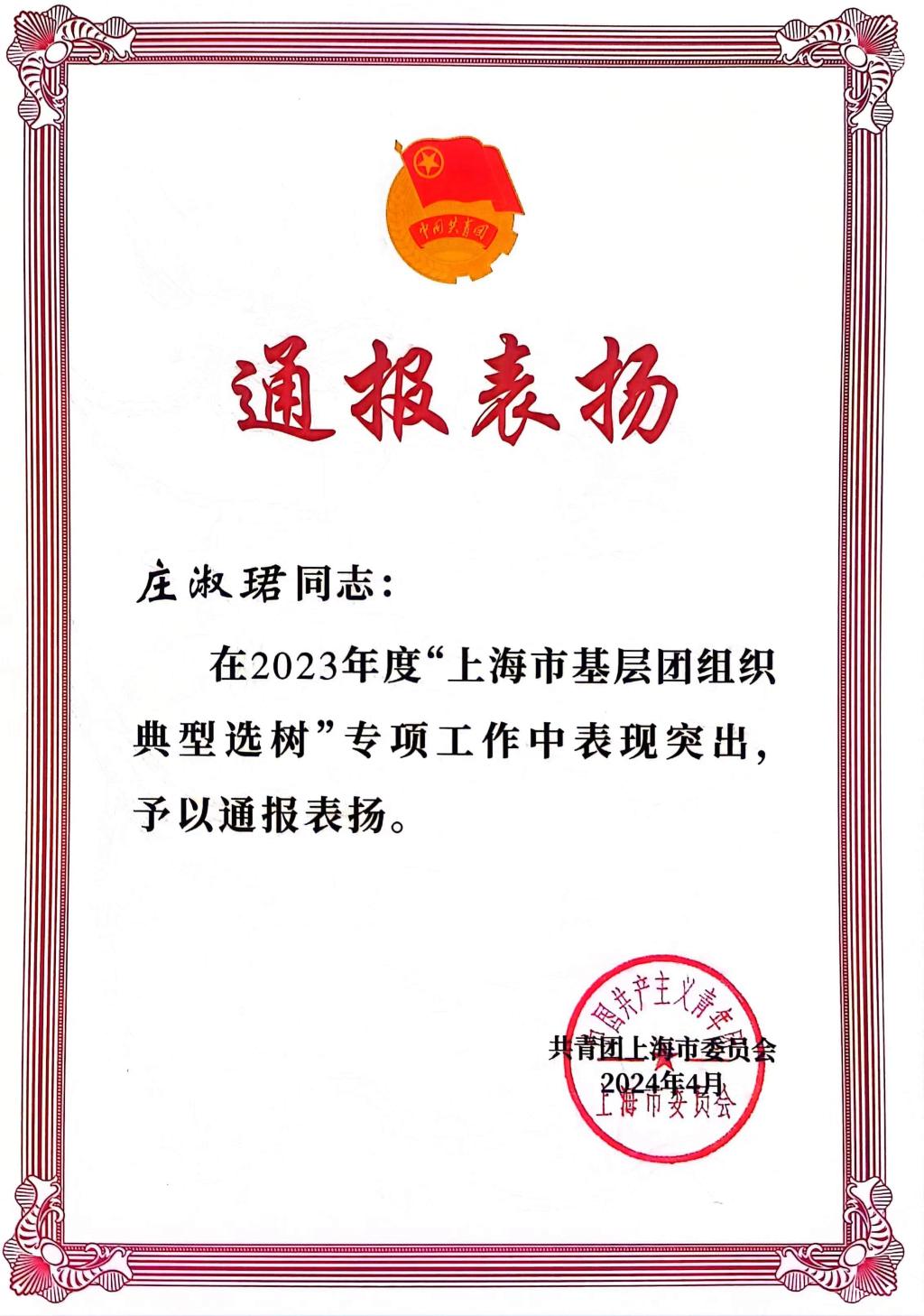 为深切贯彻习近平总书记对青年工作的战略指引,上海市团市委全力推进“三全育人”综合改革的深度与广度,致力于强化共青团在引领青年方向、汇聚青年力量、服务青年需求上的使命担当,旨在全面提升团组织的引领力、组织力与服务力,树立鲜明典范,驱动新时代基层团建迈向高质量、创新型发展新阶段,上海市团市委开展了2023年度基层团组织典型选树专项工作。近日,信息学院团总支在2023年度“上海市基层团组织典型选树”中荣获通报表扬。